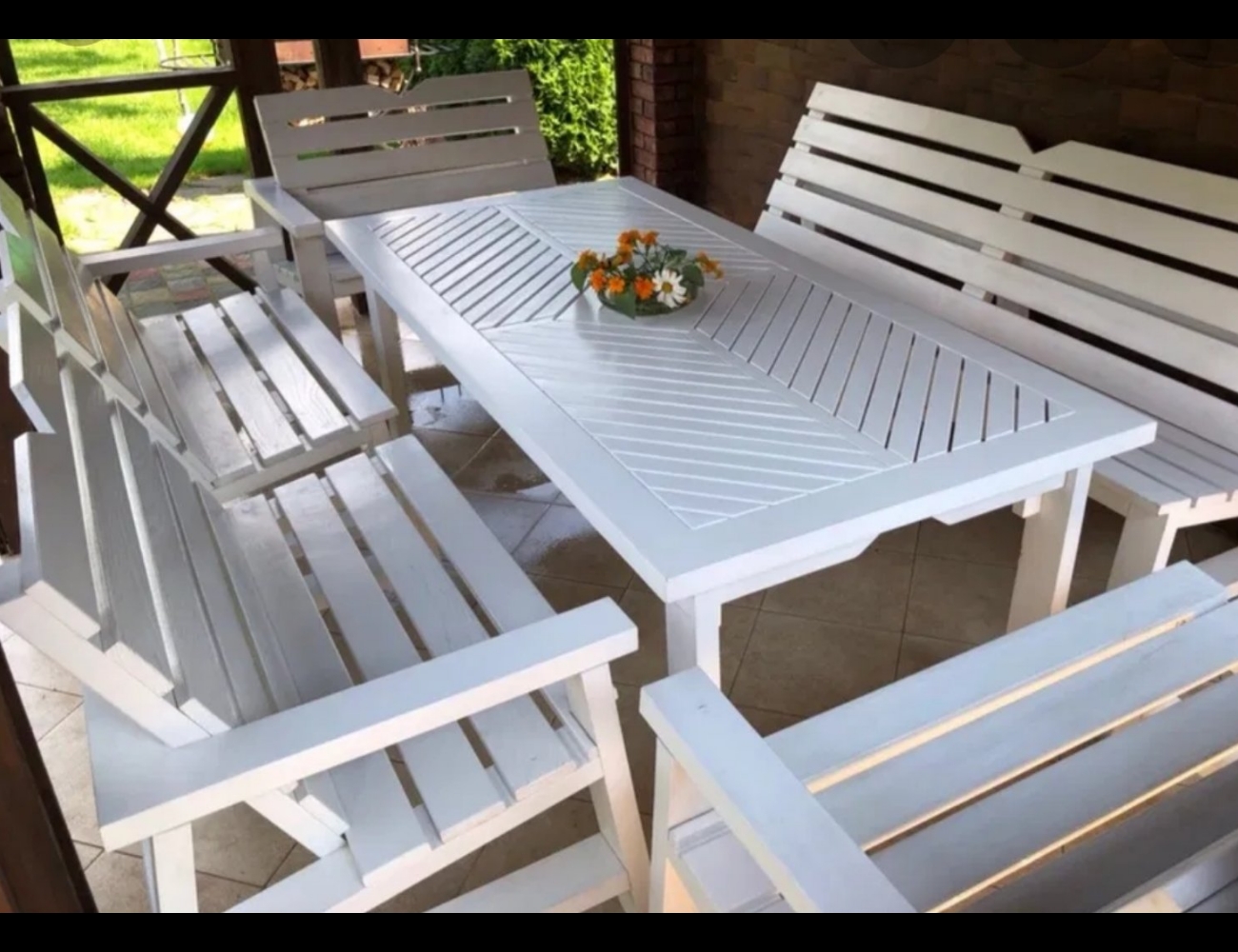 - Лавки, диваны и прочая мебель для уютного отдыха под открытым небом.